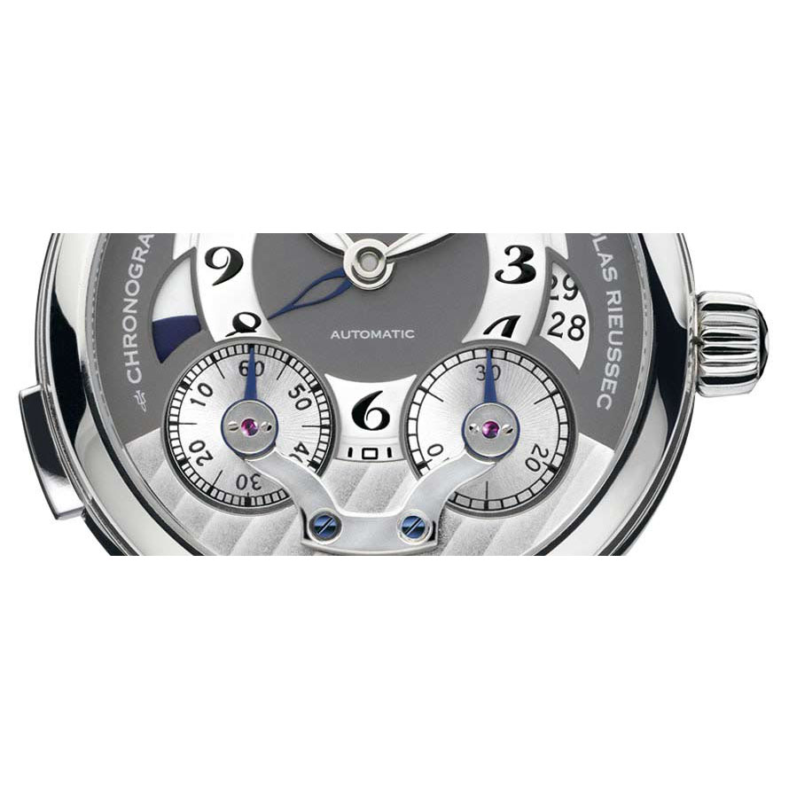 В основе создания первого механического калибра, изготовленного в часовых мастерских Montblanc в Ле Локль, лежит представленное в 1821 году изобретение Николя Риуссека. Однокнопочный хронограф Montblanc Nicolas Rieussec Monopusher Chronograph приводится в движение калибром Montblanc MB R100 с ручным заводом, оснащенным механизмом с классическим колонным колесом и вертикальной дисковой муфтой, которая обеспечивает передачу энергии на колеса хронографа, практически полностью исключая трение.